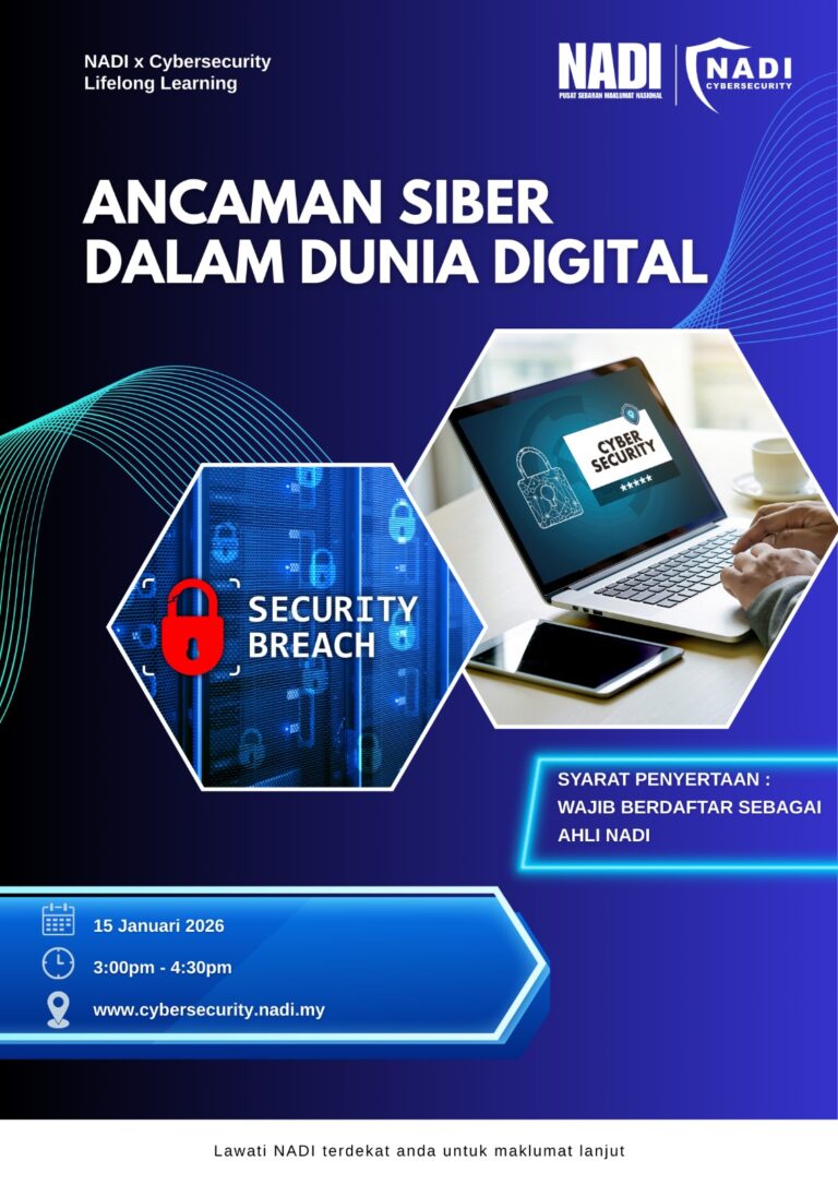 Ayuh mulakan tahun 2026 dengan langkah yang bermakna melalui penyertaan dalam webinar pertama kami yang memfokuskan kepada ancaman siber dalam dunia digital. Pihak kami amat mengalu-alukan penyertaan para peserta dalam webinar pertama bagi tahun 2026 sebagai inisiatif awal meningkatkan kesedaran dan kesiapsiagaan terhadap ancaman siber.