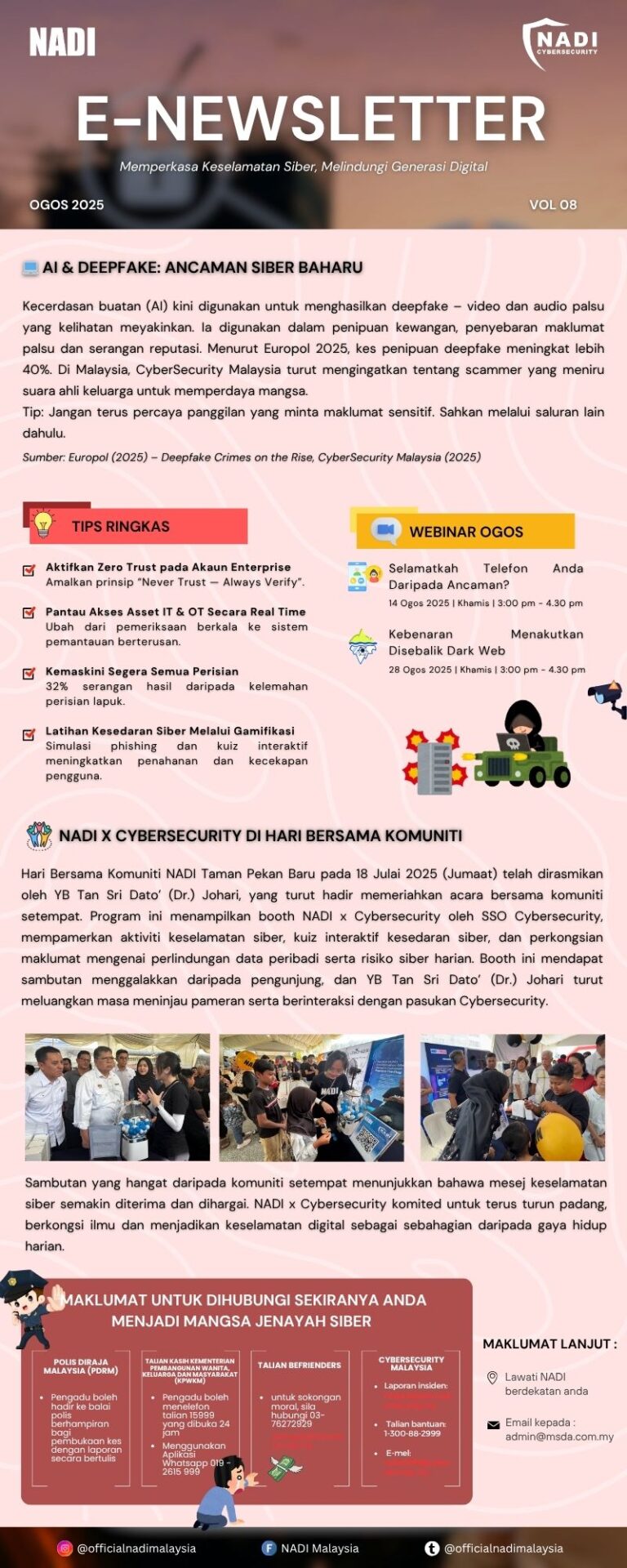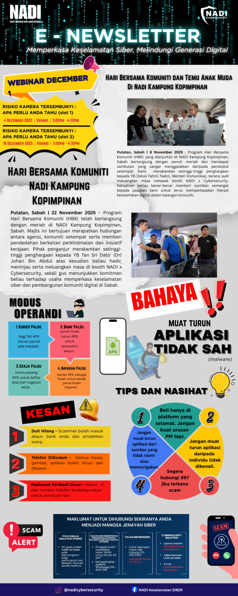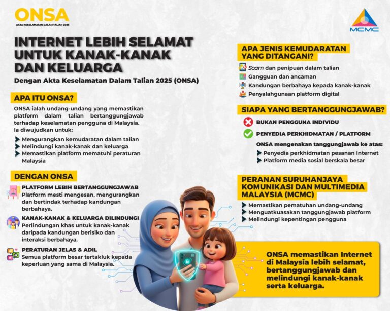 Akta Keselamatan Dalam Talian 2025 (ONSA) memperkukuh tanggungjawab platform digital demi keselamatan pengguna.Perlindungan kanak-kanak diutamakan, kandungan memudaratkan wajib ditangani.Keselamatan dalam talian bukan pilihan, ia tanggungjawab bersama.Maklumat lanjut mengenai ONSA boleh didapati di laman sesawang MCMC dihttps://mcmc.gov.my/en/onsa/home #MCMC #ONSA #NADIMCMC