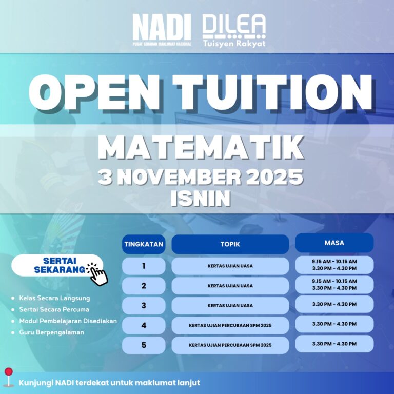Jom sertai Open Tuition bersama NADI DILEA: Tuisyen Rakyat! đ