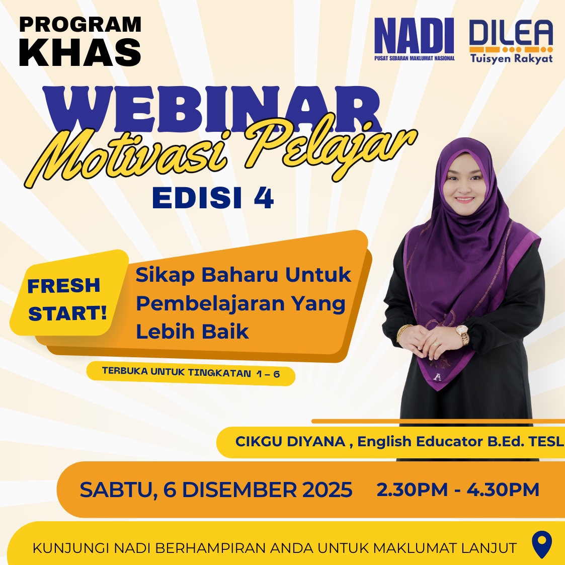 π’ PROGRAM KHAS: WEBINAR MOTIVASI PELAJAR EDISI 4 π’ Hello pelajar Tingkatan 1 hingga 6! π Rasa semangat makin pudar atau perlukan motivasi baru untuk terus fokus dalam pelajaran? Jom sertai Webinar Motivasi Pelajar Edisi 4 yang membawakan tema “Fresh […]
